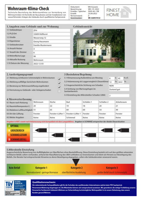 Wohnraum-Klima-Check - online Der Wohnraum-Klima-Check bietet aktive Hilfe bei Problemen, die sich bei Maßnahmen der Energieeinsparung durch Lüftung ergeben können. Hierzu wird im Ortstermin eine vollständige Bestandsaufnahme der Risiken, Auswirkung und der Optimierungspotenziale vorgenommen. Daraus wird ein zweiseitiger Ausweis generiert,