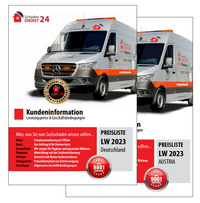 Preisliste 2023 Preisstabilität trotzt hoher Lohnkosten… Wasserschäden und Rohrbrüche nehmen bekanntlich keinerlei Rücksicht auf Krisen und Mangel an Personal. Eher steigt der Bedarf an fachgerechtem Schadenservice sogar noch sehr deutlich an, denn durch den Klimawandel gibt es vermehrt zu tun.