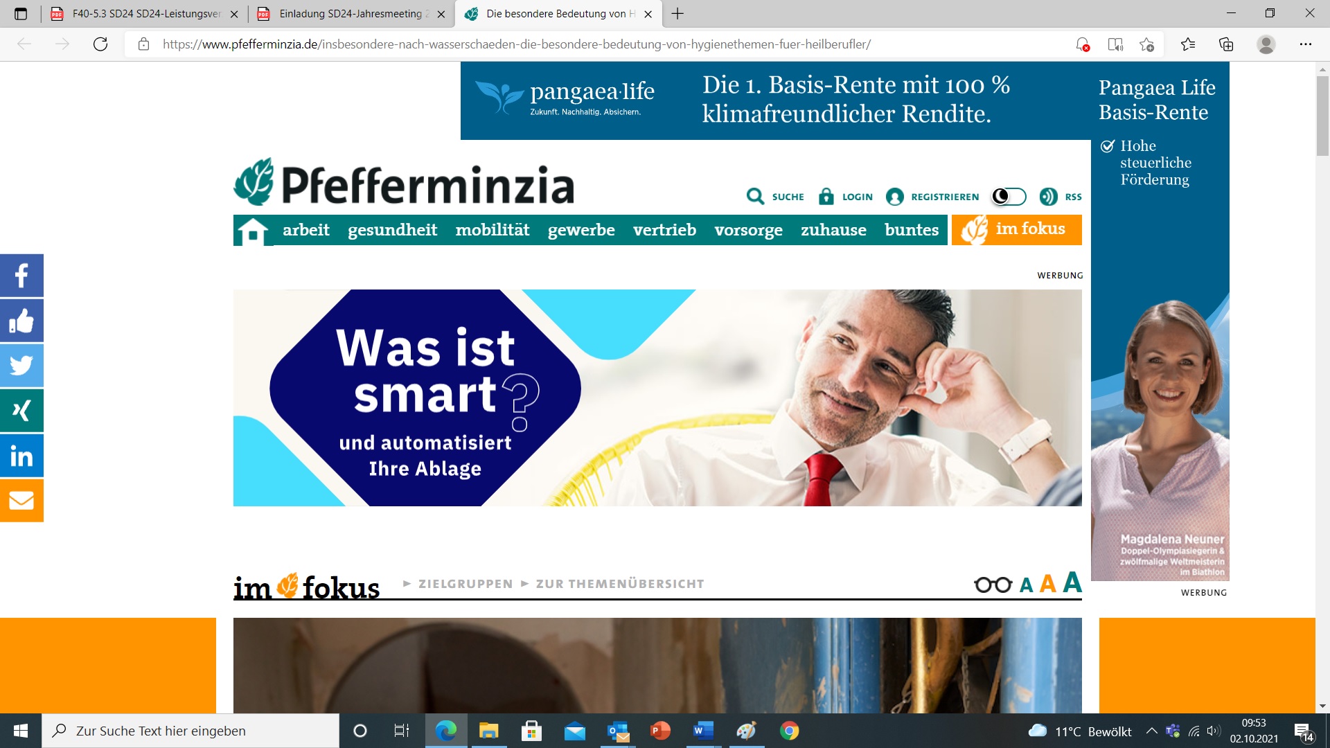 Pfefferminzia klärt auf Hygienethema Wasserschaden Wir freuen uns über das Interesse des Versicherungsfachportals „Pfefferminzia“, welches nun auch Hygiene-Themen der Versicherungswirtschaft bei Sachschäden mit Wassereintrag in Gebäuden behandelt. Eine logische Konsequenz, denn insbesondere sensible Kunden wie Apotheken und andere Unternehmen im